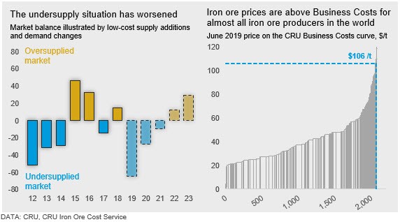 • Higher Chinese iron ore production in 2019 H2 as mine investments start to pay off.