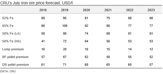 The iron ore price averaged $106 /t in June, which brings the 2019 year-to-date price as high as $90 /t. However, in the second half of the year, we see a few bearish factors that will contribute to prices being lower than they are today.