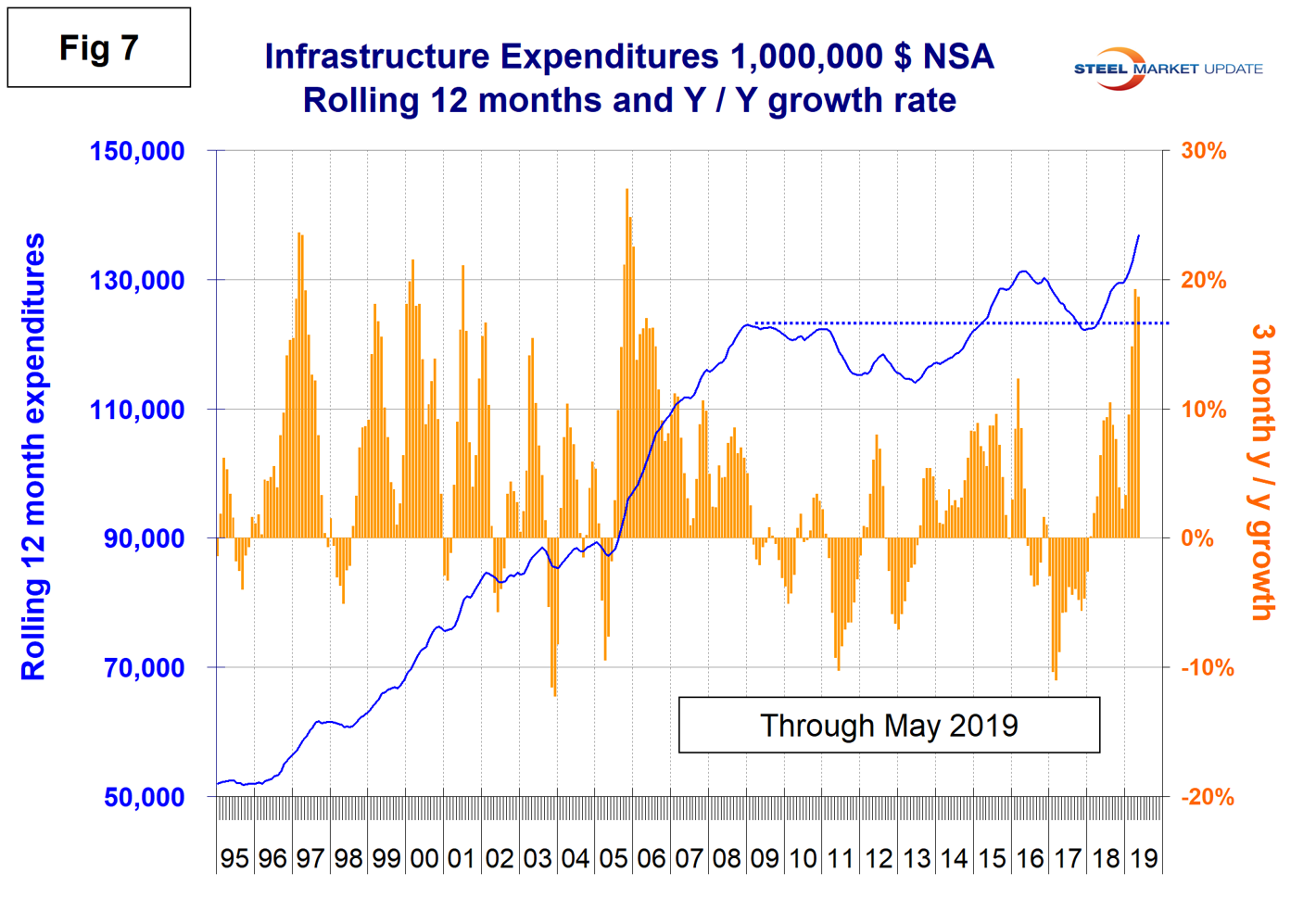 Figure 7 shows the history of infrastructure expenditures and the year-over-year growth rate.
