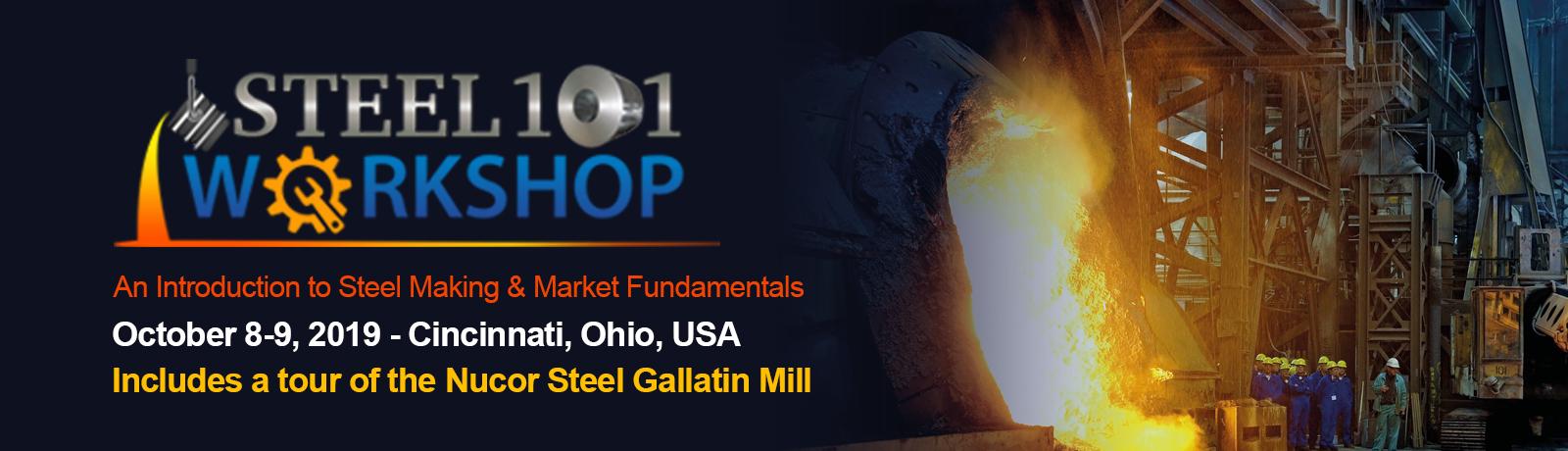 On Oct. 8-9, 2019, Steel Market Update will conduct our next Steel 101: Introduction to Steel Making & Market Fundamentals workshop in Cincinnati, Ohio. This workshop will include a tour of the Nucor Steel Gallatin Mill.