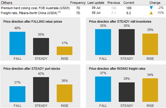 As expected, seaborne supply has dropped in July as we are now entering the Australian maintenance period. Both BHP and FMG are in the first month of their financial year and are expected to carry out heavy maintenance after running their systems hard in June. Roy Hill will carry out its shiploader maintenance later on this month. Based on our shipment tracker, we are expecting Port Hedland’s June shipments to come in at a new all-time high. In Brazil, shipments were unchanged m/m, with continued recovery of supply from Minas Gerais.