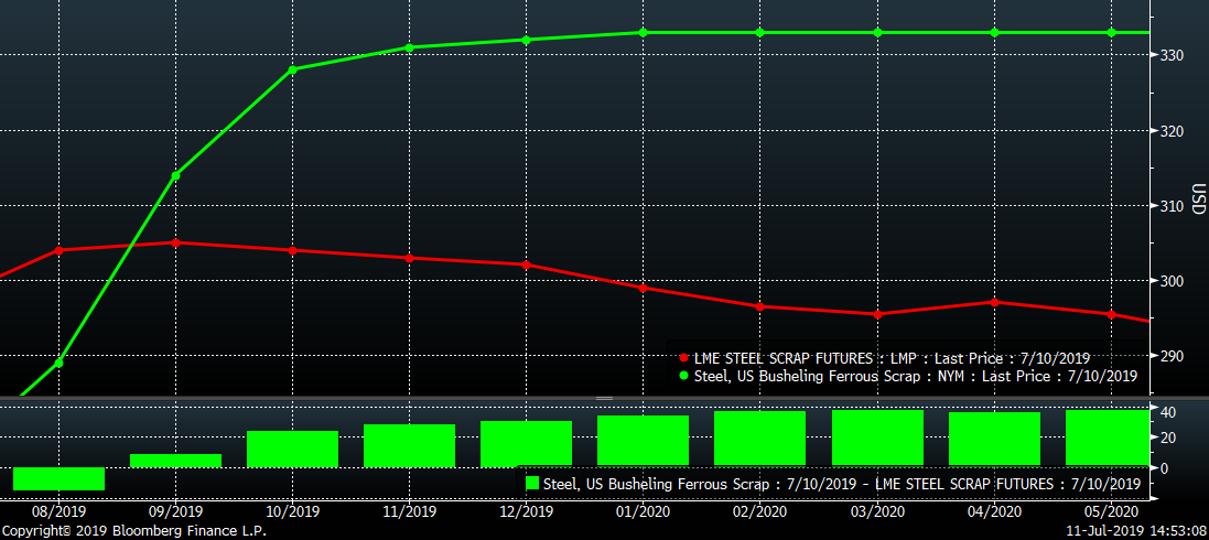 LME Turkish Scrap & CME Busheling Futures Curve