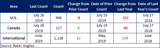 The Baker Hughes International Rotary Rig Count is a monthly census of active drilling rigs exploring for or developing oil or natural gas outside of the United States and Canada. International rigs considered active must be drilling at least 15 days during the month. The Baker Hughes International Rotary Rig Count does not include rigs drilling in Russia or onshore China.