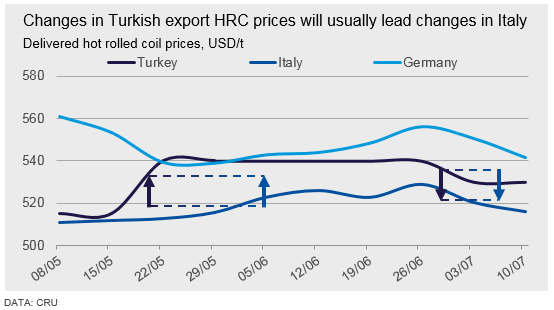 The local Italian and Spanish markets will usually be influenced by Turkish sheet prices, and as such changes to Turkish export prices will lead changes to Italian and Spanish domestic prices. The Italian market is both conveniently located for Turkish exporters and reacts quickly to cheap import prices. This affects greater Europe in turn, as other mills react in competition to lower prices from Italian mills.