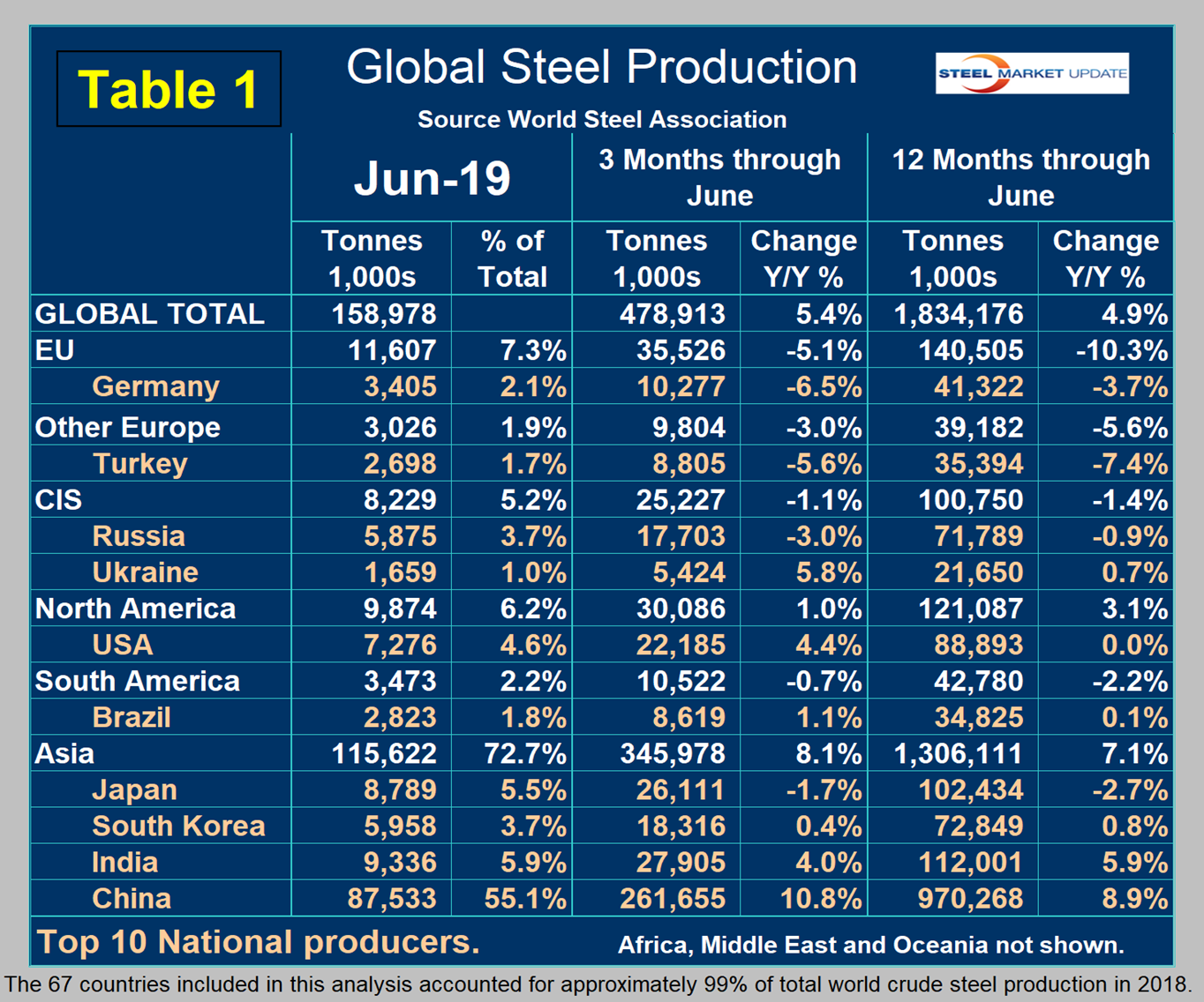 This analysis is based on data made public monthly by the World Steel Association. The WSA is one of the largest industry associations in the world. Members represent approximately 85 percent of the world’s steel production, including over 160 steel producers, national and regional steel industry associations and steel research institutes.