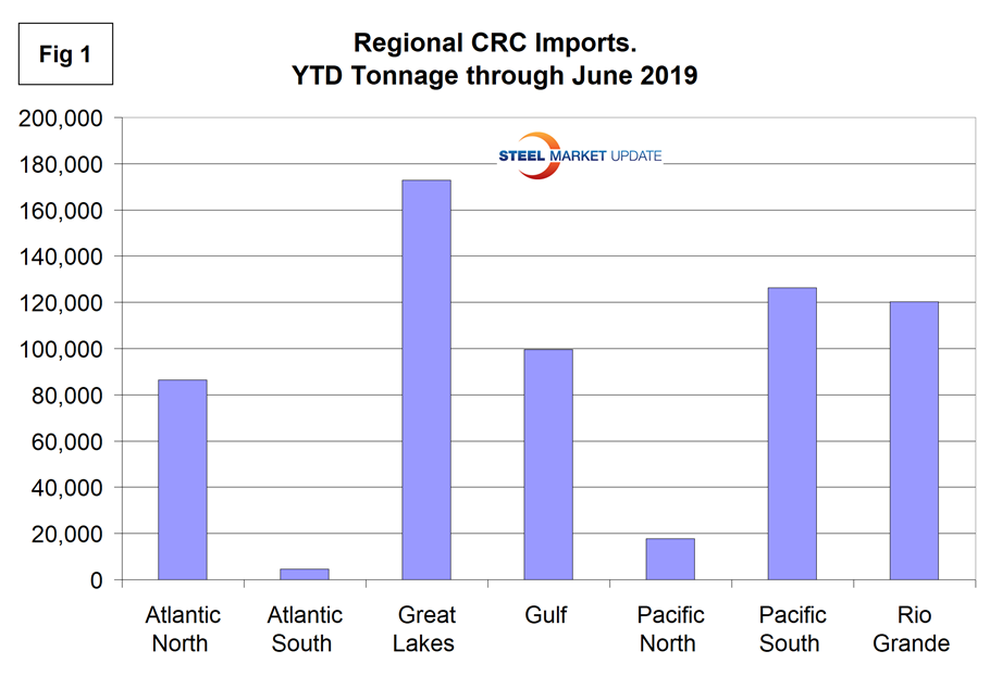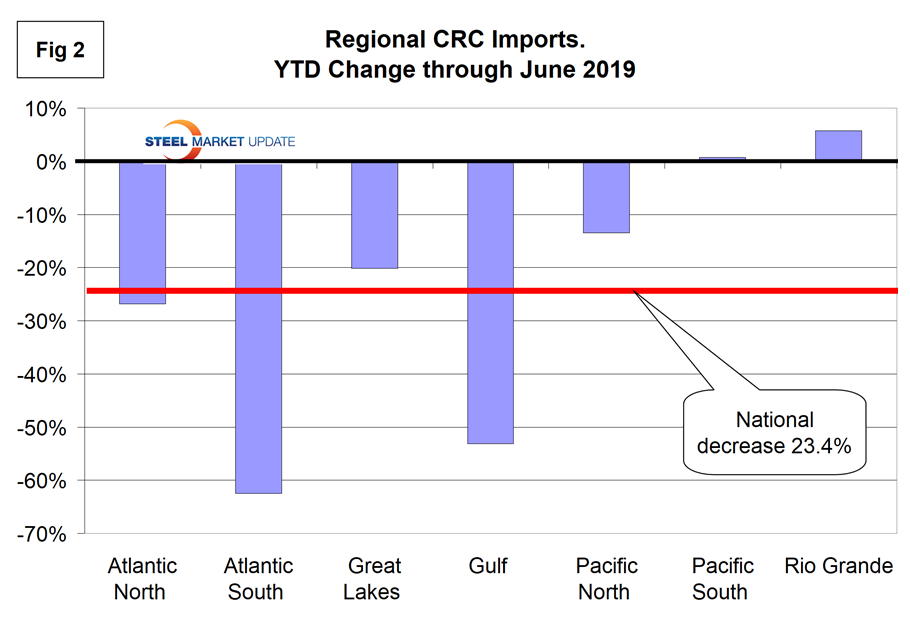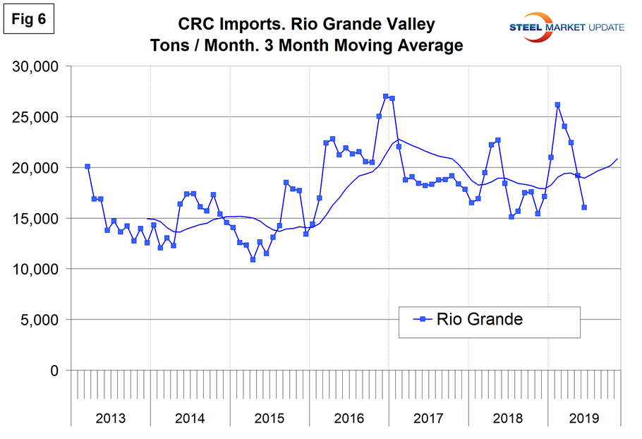 Year to date, June, total cold rolled imports were down by 23.4 percent, but the Gulf North was down by 53.2 percent and the Rio Grande was up by 5.7 percent.
