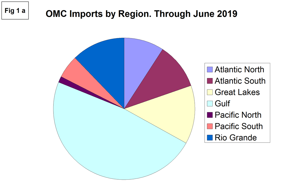 National level import reports do a good job of measuring the overall market pressure caused by the imports of individual products. The downside is that there are huge regional differences, and we believe that buyers and sellers should have an understanding of regional differences. Figure 1 shows the year-to-date tonnage into each region and the huge variation between them. Figure 1a presents the same data as a pie chart.