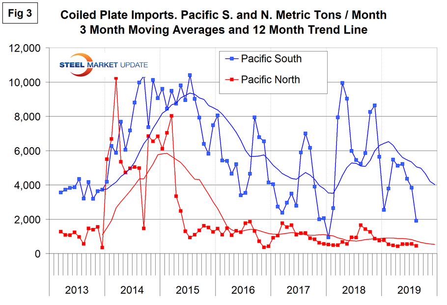 Total coiled plate imports were down by 19.7 percent for the year, but the Rio Grande region was down by 64.4 percent and the Gulf was up by 22.3 percent.