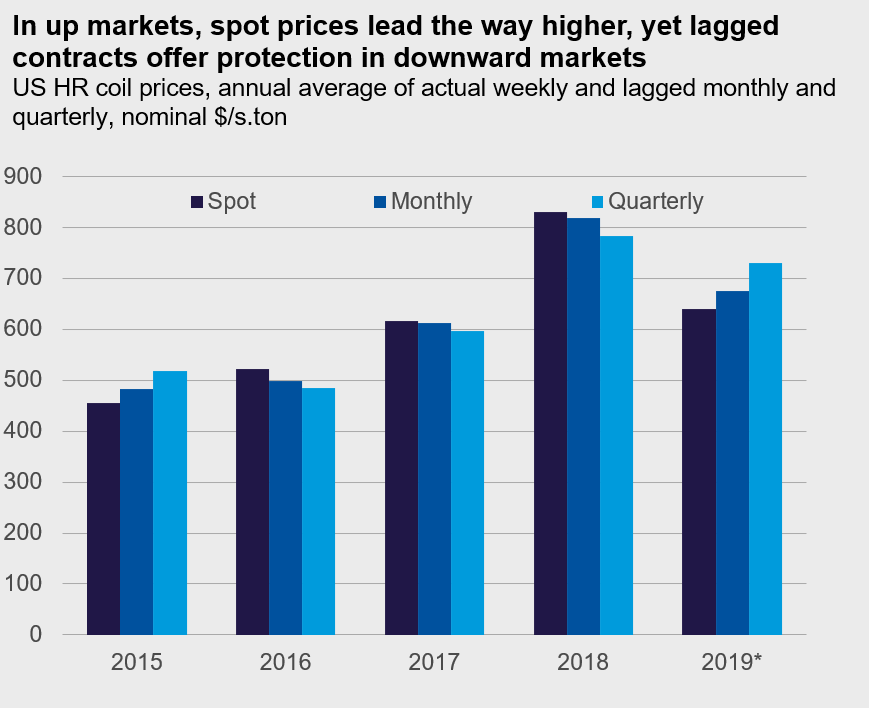 U.S. Steel recently announced its intent to withdraw from spot market-linked adjustable price contracts in 2020 (i.e. contracts where the price moves with the spot market in some way). The following offers insight on the use of such contracts and what may come about if the intended change is implemented more widely.