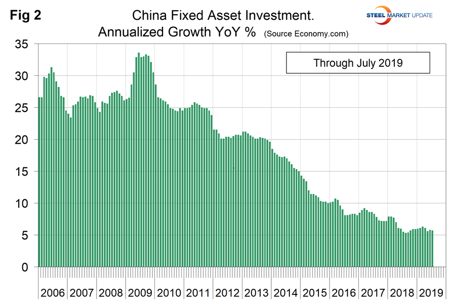 The official economic statistics out of China showed a decline in industrial production in July. But in June, China’s share of global steel production was 55.1 percent.