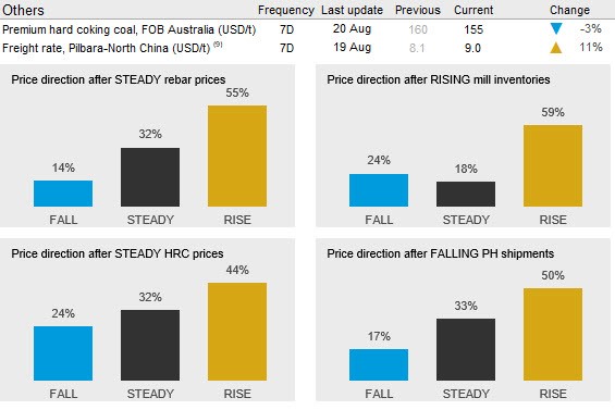 Most of our indicators point towards prices rising in the coming week. Steel prices have been rising, which has rejuvenated hopes of a recovering steel market. Mills still maintain low inventories, so it is likely that we will see some restocking in the coming weeks as the iron ore price has reached a lower level.