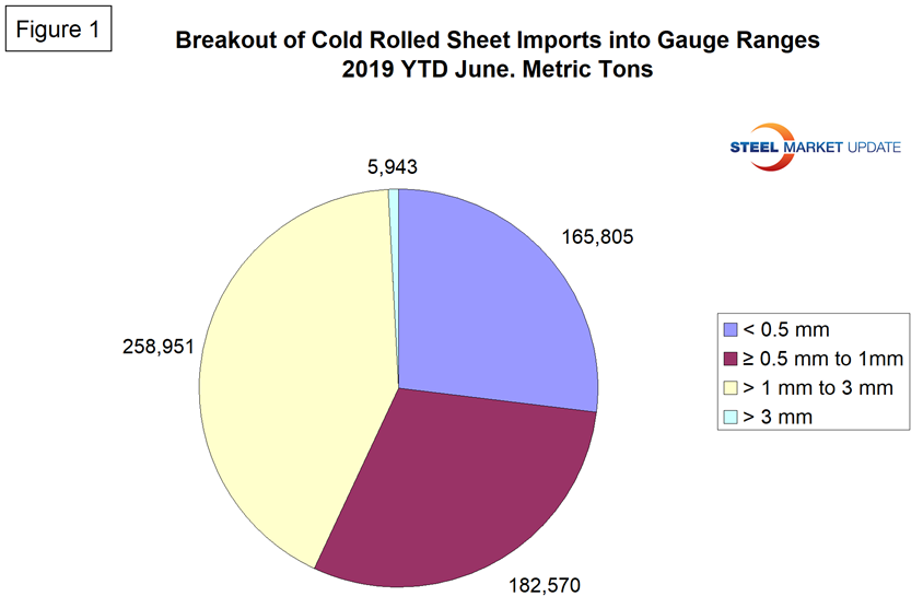 Figure 1 breaks the year-to-date cold rolled sheet tonnage down into the four gauge ranges that are identified in the HTS codes.