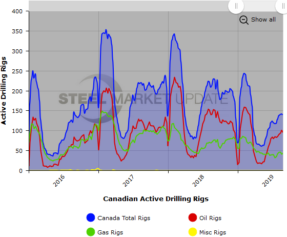 International rigs increased by 24 to 1,162 rigs for the month of July, an increase of 165 rigs from the same month one year ago. For a history of both the U.S. and Canadian rig count, visit the Rig Count page on the Steel Market Update website here.
