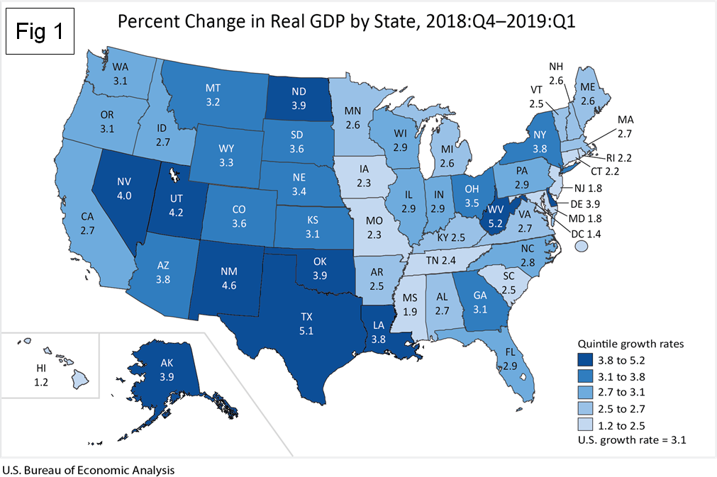 BEA: Regional GDP Growth Through Q1 2019