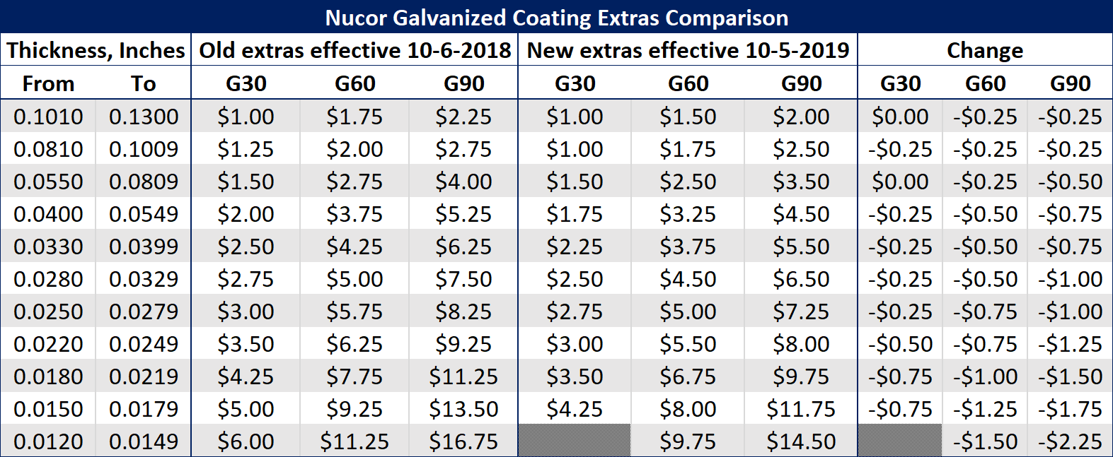 SMU has done an analysis on the old and new Nucor galvanized extras, provided below.