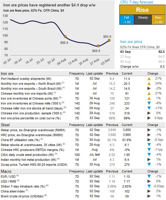 Although supply has improved, the iron ore market is still tight. Our sources are also suggesting that supply from countries such as India and Iran may be weakening, which would cause further supply concerns. Our analysis based on recent key metrics from the market suggests that there is room for prices to increase further in the coming week.