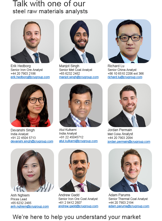 Supply of iron ore, particularly from Australia, has strengthened. The country is an important source of lump, so the strong supply is putting further pressure on the lump premium. Lump inventories in China are currently at the highest level in 2019. Baffinland, a lump supplier in northern Canada, is currently shipping at a high rate, which means lump supply to the European market is looking solid.