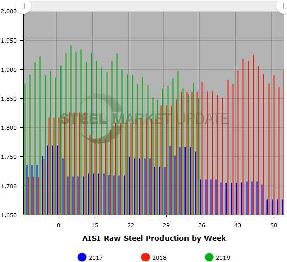 The raw steel production tonnage provided in this report is estimated. The figures are compiled from weekly production tonnage from 50 percent of the domestic producers combined with monthly production data for the remainder. Therefore, this report should be used primarily to assess production trends. The AISI monthly production report provides a more detailed summary of steel production based on data supplied by companies representing 75 percent of U.S. production capacity.