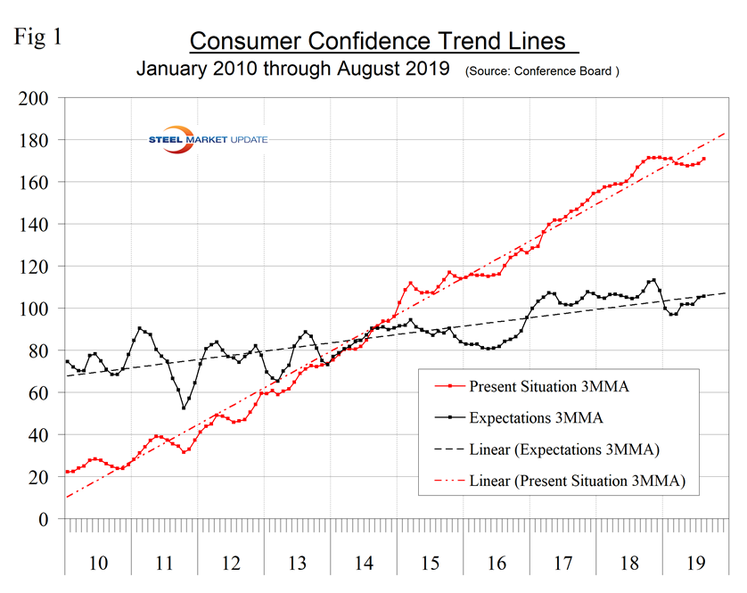 SMU Comment: The Conference Board Consumer Confidence Index is a volatile measure and must be reviewed as a three-month moving average to obtain a realistic view of trends. Steel demand is dependent on the growth of GDP, which in turn is strongly influenced by consumer confidence, disposable income and a willingness to spend. Therefore, this was another good report.