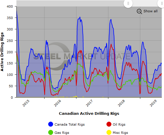 International rigs increased by 24 to 1,162 rigs for the month of July, an increase of 165 rigs from the same month one year ago. For a history of both the U.S. and Canadian rig count, visit the Rig Count page on the Steel Market Update website here.