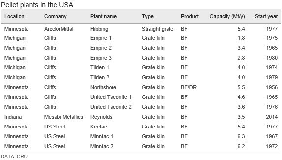 In 2015, steel and iron ore prices reached a bottom and U.S. Steel took the decision to idle the Granite City works in Q4 that year. As a result, the company’s own pellet consumption fell by nearly 3 Mt/y. After the closures, U.S. Steel’s remaining pellet needs were supplied entirely from Minntac. However, weak demand for pellets around the Great Lakes and on the seaborne market resulted in U.S. Steel shutting the Keetac mine and the company stopped selling pellets to third parties within the country. As a result, 1-2Mt of 3rd party pellet sales were removed from the merchant Great Lakes market. In addition to pellets, U.S. Steel imports ~1 Mt of fines and concentrate from Canada and Brazil for the company’s only operating sinter plant at its Gary works.