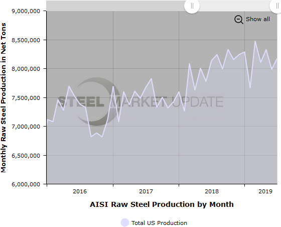 SMU Note: Interactive versions of the raw steel production graphics above can be seen in the Analysis section of our website here. If you need assistance logging into or navigating the website, contact us at info@SteelMarketUpdate.com.
