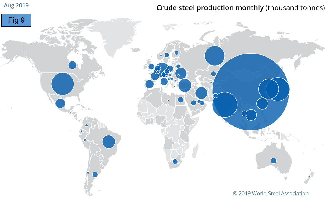 Figure 9 is a schematic from the WSA showing the relative production of the major steel producing nations in August.