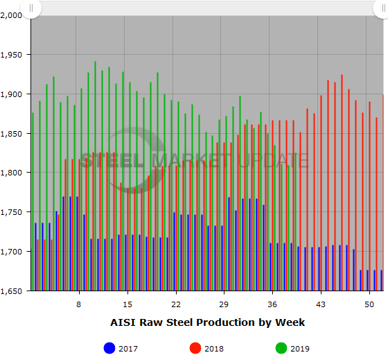 The raw steel production tonnage provided in this report is estimated. The figures are compiled from weekly production tonnage from 50 percent of the domestic producers combined with monthly production data for the remainder. Therefore, this report should be used primarily to assess production trends. The AISI monthly production report provides a more detailed summary of steel production based on data supplied by companies representing 75 percent of U.S. production capacity.