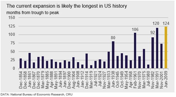 The U.S. economy is in the midst of its longest economic expansion on record—124 months and counting. The recent deceleration in U.S. growth momentum and the fading health of the global economy call into question whether the expansion can continue, and for how long. In this article, we discuss the current state of the U.S. economy and our reasons why we are not yet calling a U.S. recession in our base case forecast.