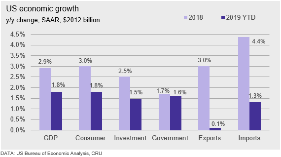 The chart below illustrates the growth in GDP, and the key expenditure components, both in 2018 and YTD through Q2 2019.