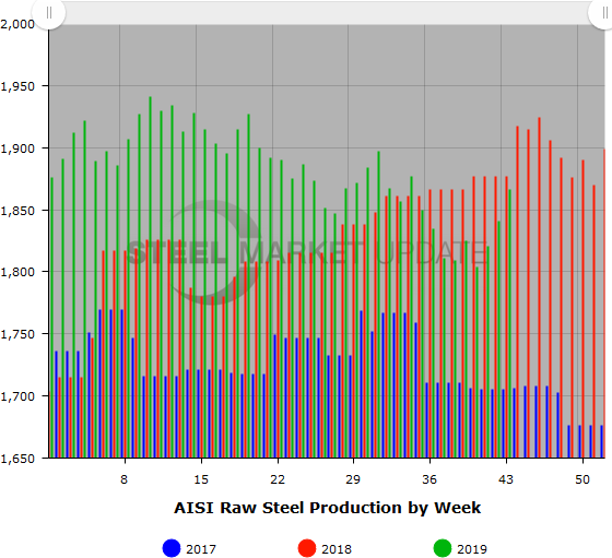 Adjusted year-to-date production through Oct. 26 totaled 79,785,000 net tons for the year at an average mill utilization of 80.3 percent–up 2.7 percent from 2018 when the year-to-date utilization rate was 77.5 percent.