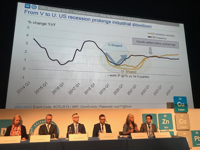 On Tuesday, CRU conducted a “breakfast meeting” that was essentially a half-day discussion of various metals markets and the world economy, with a focus on forecasting the U.S. economy. I was very impressed with the way CRU conducted their economic, steel and aluminum panel and I think it would be an excellent model for the 2020 SMU conference. I have discussed with Dr. Jumana Saleheen, the Chief Economist for the CRU Group, about her coming to Atlanta to replicate the panel I got to see on Tuesday.