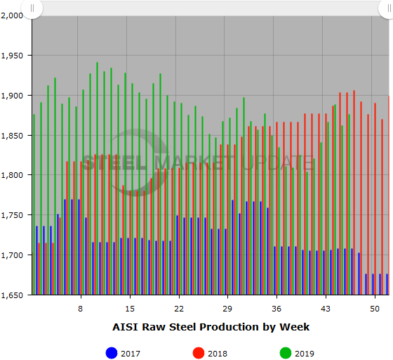 The raw steel production tonnage provided in this report is estimated. The figures are compiled from weekly production tonnage from 50 percent of the domestic producers combined with monthly production data for the remainder. Therefore, this report should be used primarily to assess production trends. The AISI monthly production report provides a more detailed summary of steel production based on data supplied by companies representing 75 percent of U.S. production capacity.