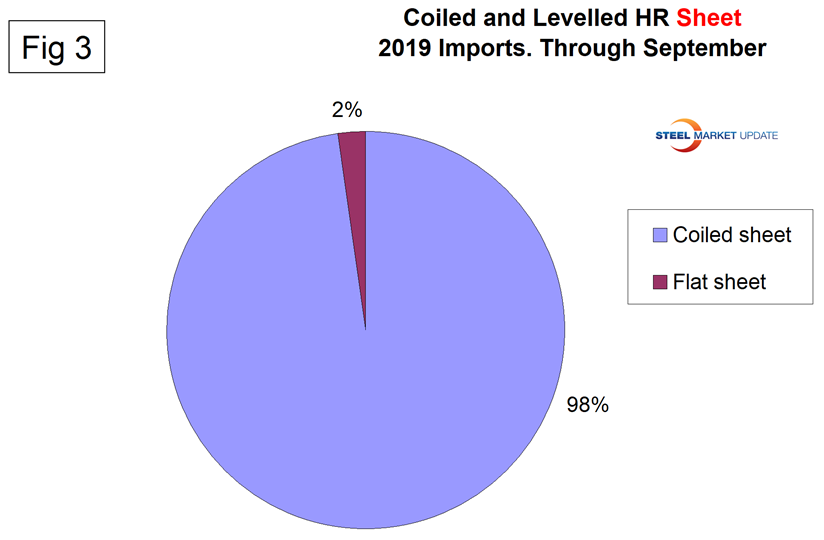 Figure 3 breaks the HR sheet tonnage down into coiled and leveled. Through September year to date, 98 percent was coil and 2 percent was leveled.