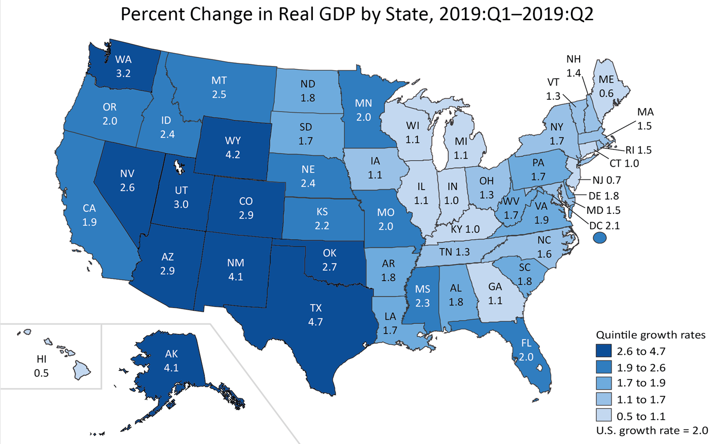 BEA: Regional GDP Growth Through Q2 2019