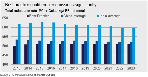 Great steps have been made in the recent decades to reduce the amount of reductant used in blast furnace ironmaking, particularly in Europe. BF producers in countries such as China and India are utilizing much greater amounts of reductant on average in their BFs. Targeting best operating practices is, therefore, a logical first step to cut emissions for many producers in these countries. A reduction to the coke rate and/or substituting coke with PCI injection leads to a more than 1:1 decrease in CO2 emissions as the fugitive and process emissions associated with the coking process are subsequently decreased.