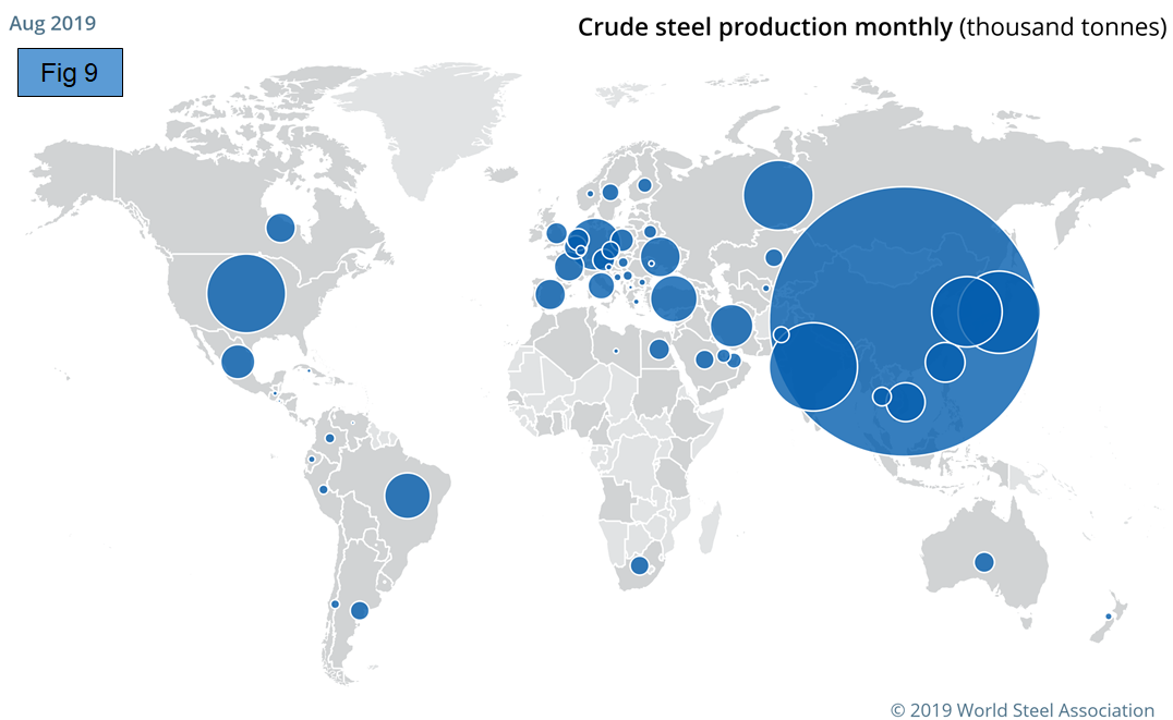 Figure 9 is a schematic from the WSA showing the relative production of the major steel producing nations in August.