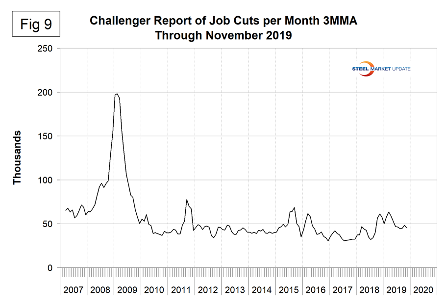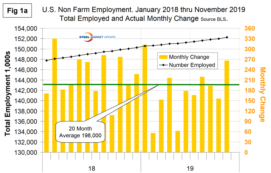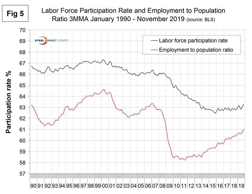 Net job creation in November increased to 266,000 following upwardly revised results for September and October. September was revised up by 13,000 and October by 28,000. Rising employment and wages are the main contributors to GDP growth because personal consumption accounts for almost 70 percent of GDP. Steel consumption is related to GDP; therefore, this is one of the indicators that help us understand the reality of the steel market.