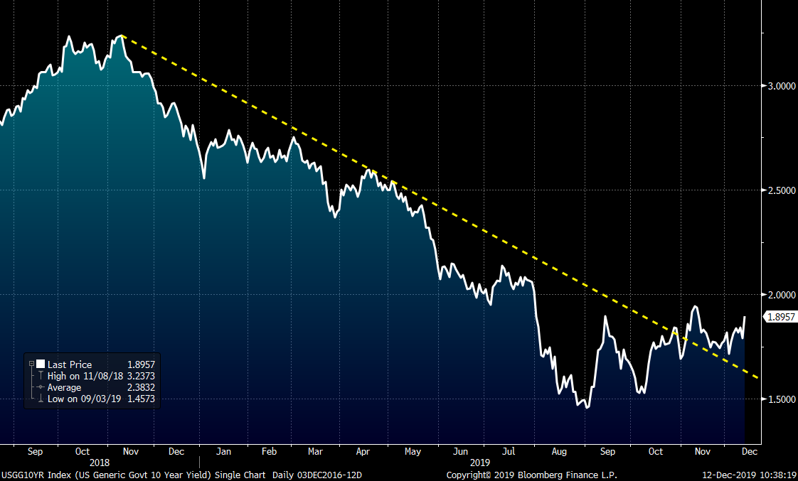 The collective global economic strength in manufacturing began to fragment at the end of 2017. A discussion of what factors caused this is beyond the scope of this article, but where it started was Europe. As 2018 unfolded, slowing industrial growth moved to Asia and then eventually to the U.S. Throughout this period, slowing growth and destocking brought intense deflationary pressure on a number of asset classes; steel and scrap bore the brunt of it. The chart of the U.S. 10-year Treasury provides a roadmap of this deflation. The 10-year rates peaked last November just above 3.2 percent and steadily fell all year until bottoming in September. The Federal Reserve uses the fed funds rate as a blunt tool to generate or slow growth. Lower rates stimulate the economy and that is exactly what the lower rates have done.