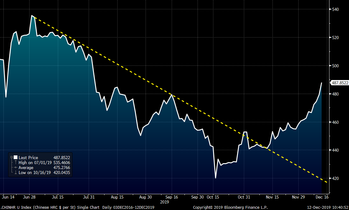 In 2016, prices in Chinese HRC exploded higher from $275/st in mid-February to $450/st by mid-April. Midwest HRC followed shortly after rallying from $400 in March to $625 by June. Keep an eye on China.