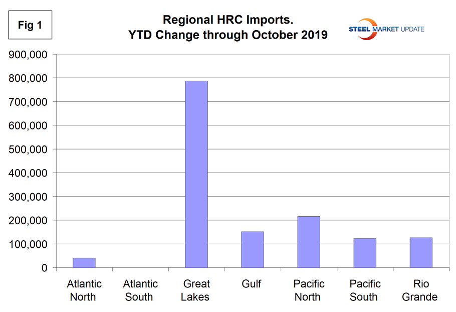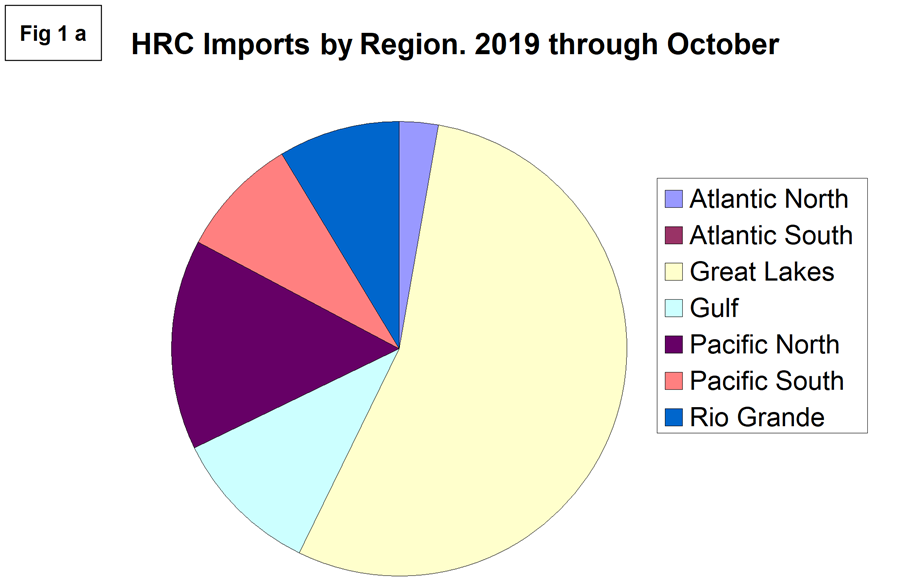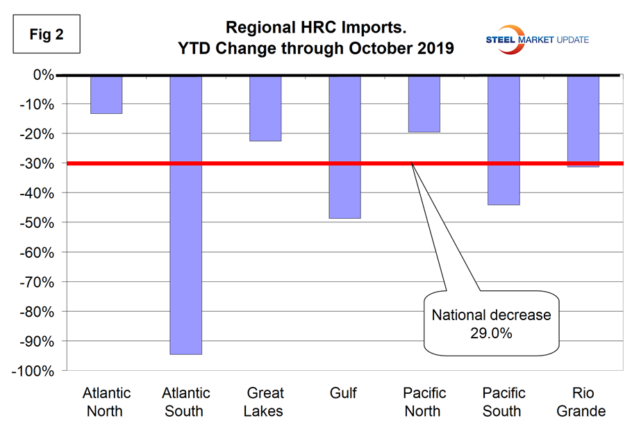 Year to date through October, total hot rolled coil imports were down by 29.0 percent and decreased in all regions. The Gulf region was down by 48.6 percent.