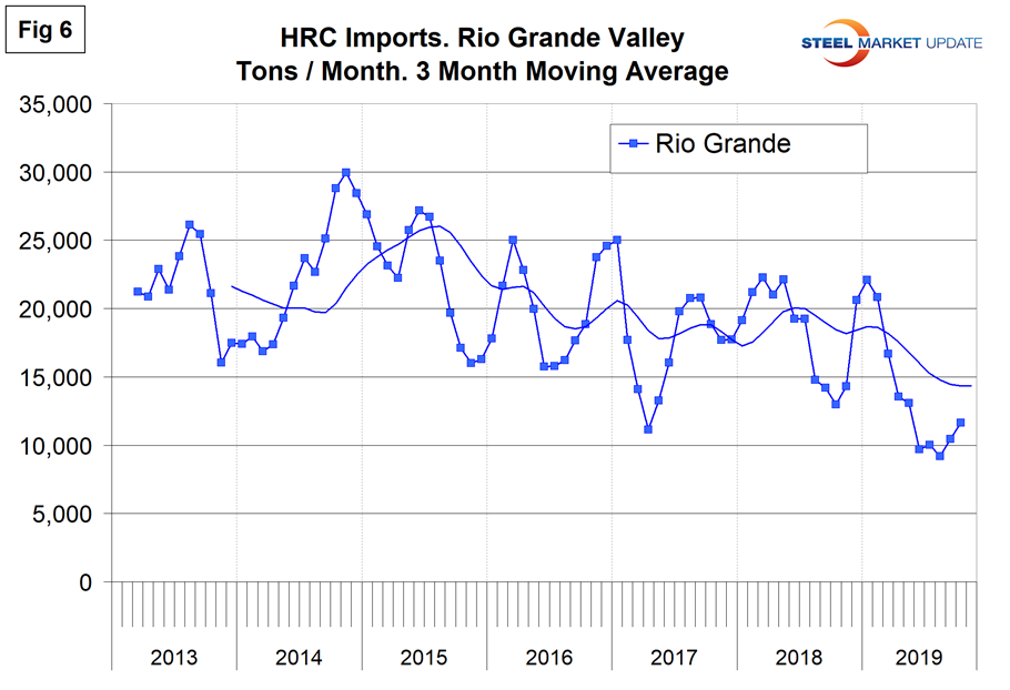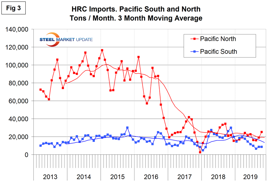 Figures 3, 4, 5 and 6 show the history of hot rolled coil imports by region since March 2013 on a three-month moving average basis. Note, the Y axis scales are not the same.