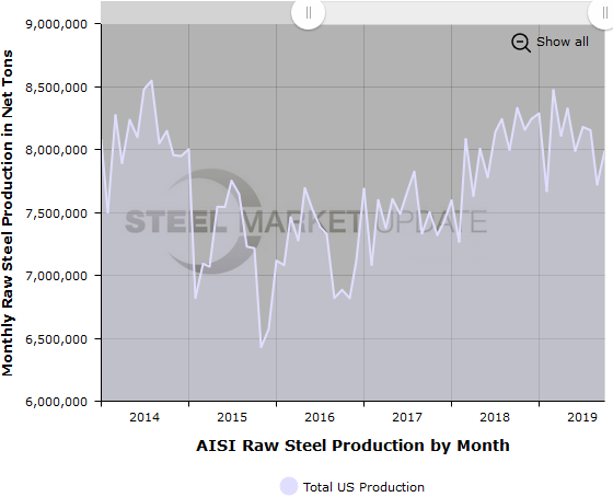 SMU Note: Interactive versions of the raw steel production graphics above can be seen in the Analysis section of our website here. If you need assistance logging into or navigating the website, contact us at info@SteelMarketUpdate.com.