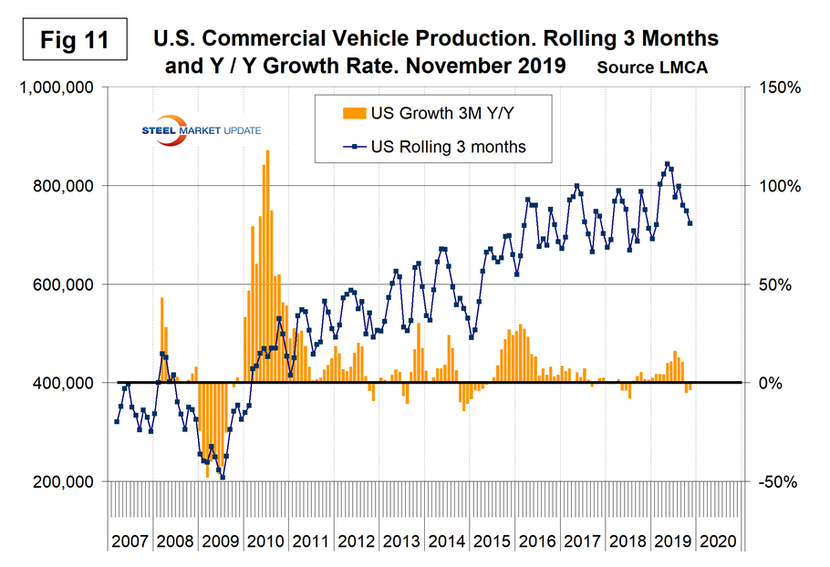 SMU Comment: The GM strike negatively affected assemblies in North America in the second half of September and most of October. This November report reflects the end of the labor action. However, regardless of the strike, there is no doubt that assembly volume in North America is declining. On a year-over-year basis, growth has been negative every month since July 2017.