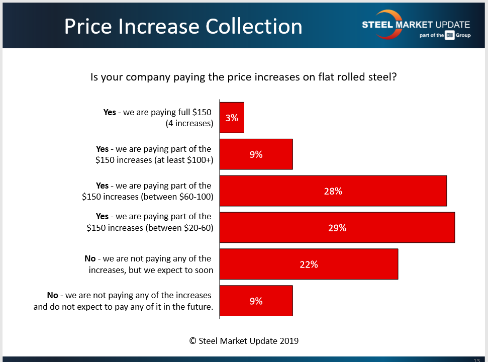 SMU asked steel buyers—service centers and OEMs—how much of the increased prices they are paying. The consensus appears to be roughly half the $150 total.