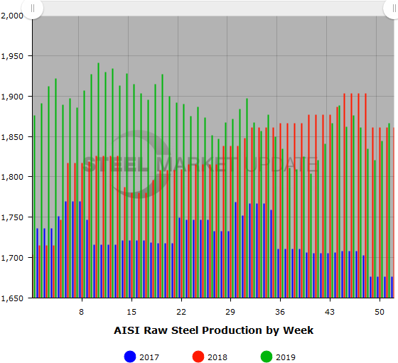Adjusted year-to-date production through Dec. 21 totaled 94,450,000 net tons at an average mill utilization of 80.1 percent–up 1.8 percent from 2018 when the year-to-date utilization rate was 78.2 percent.