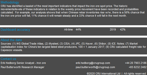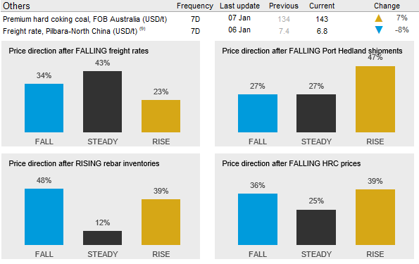 We are seeing bearish signals on the demand side but bullish supply signals, as we are expecting weakening Australian supply and low arrivals of Brazilian ore at Chinese ports. We hold a neutral view on prices in the coming week.