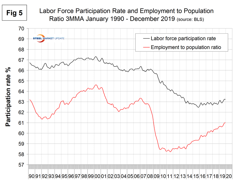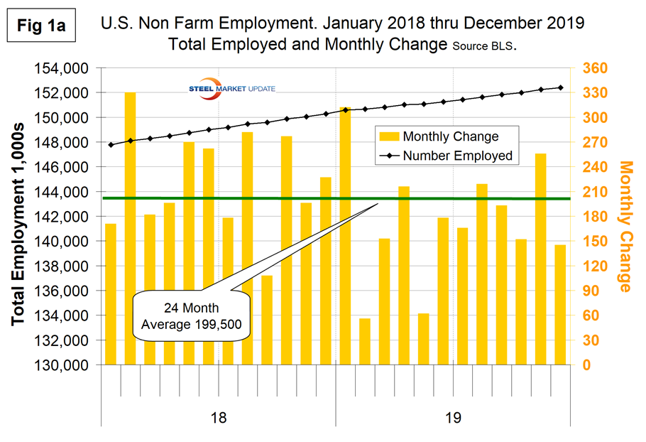 Net job creation in December declined to 145,000 from November’s exceptional result of 256,000. October and November were both revised down by 10,000. Rising employment and wages are the main contributors to GDP growth because personal consumption accounts for almost 70 percent of GDP. Steel consumption is related to GDP; therefore this is one of the indicators that help us understand the reality of the steel market