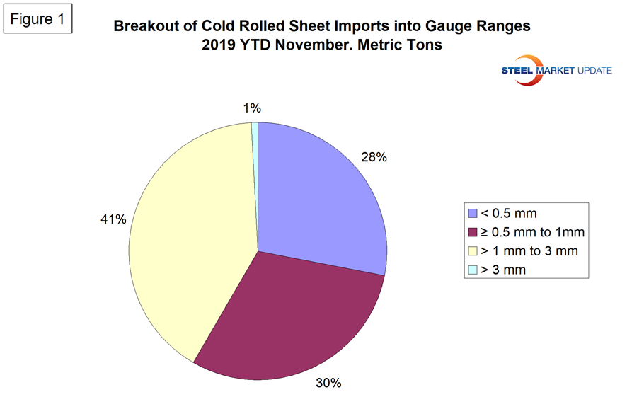 Figure 1 breaks the year-to-date cold rolled sheet tonnage down into the four gauge ranges that are identified in the HTS codes.