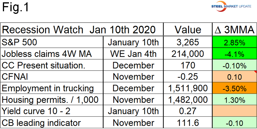 Indicators of economic activity through Jan. 10 data do not predict an imminent U.S. recession.